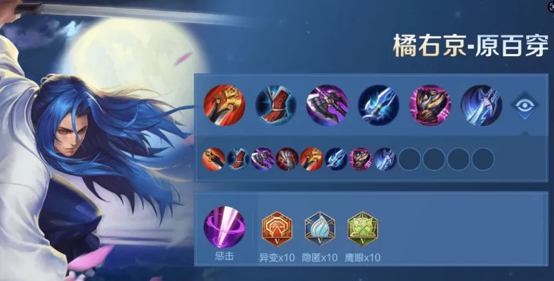 主流出装都是纯净苍穹前置,不出名刀司命,但橘右京技能CD短,爆发高,我觉得和名刀司命匹配度很高,所以我一般会前置出,最后补纯净苍穹,或者是碎星锤、破军、破魔刀,这就根据玩家个人的操作习惯和游戏理解来选择了。